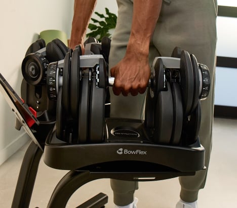 Switch between weight settings with a quick twist of the dials, from 5 to 52.5 pounds per dumbbell.2