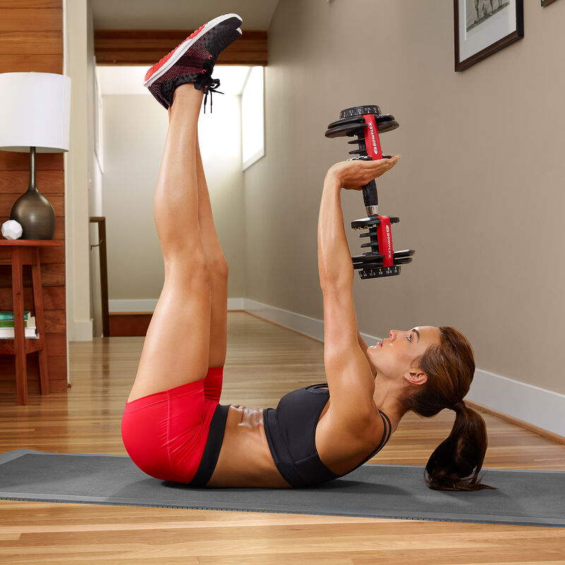 These adjustable dumbbells replace 15 sets of weights. Weights adjust from 5 to 52.5 lbs in 2.5 lb increments up to the first 25 lbs. Easy-to-use selection dials for adjusting weights. They are sold as a pair. Easily switch from one exercise to next and with the turn of a dial you can change your resistance, enabling you to gradually increase your strength. Versatile workout for your legs, back, chest, abs, shoulders and arms. Compatible with the free Bowflex SelectTech® training App for iOS and Android.-